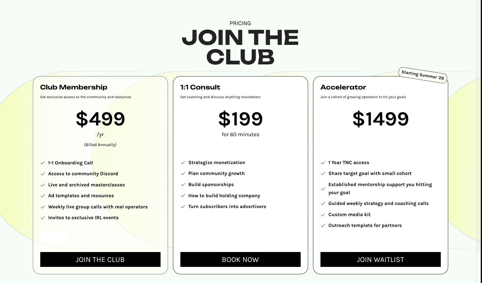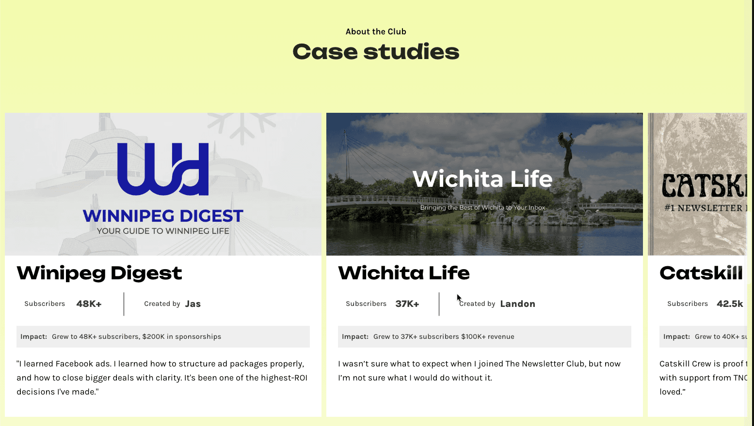 The result was a stunning, conversion-focused landing page that clearly communicated the full scope of what Newsletter Club offers. The redesigned page presented membership benefits in a digestible and visually engaging way, supported by social validation to build trust with new visitors. Both primary and secondary conversion paths were thoughtfully integrated into the user flow, giving every visitor regardless of where they were in the funnel a relevant and meaningful next step to take.